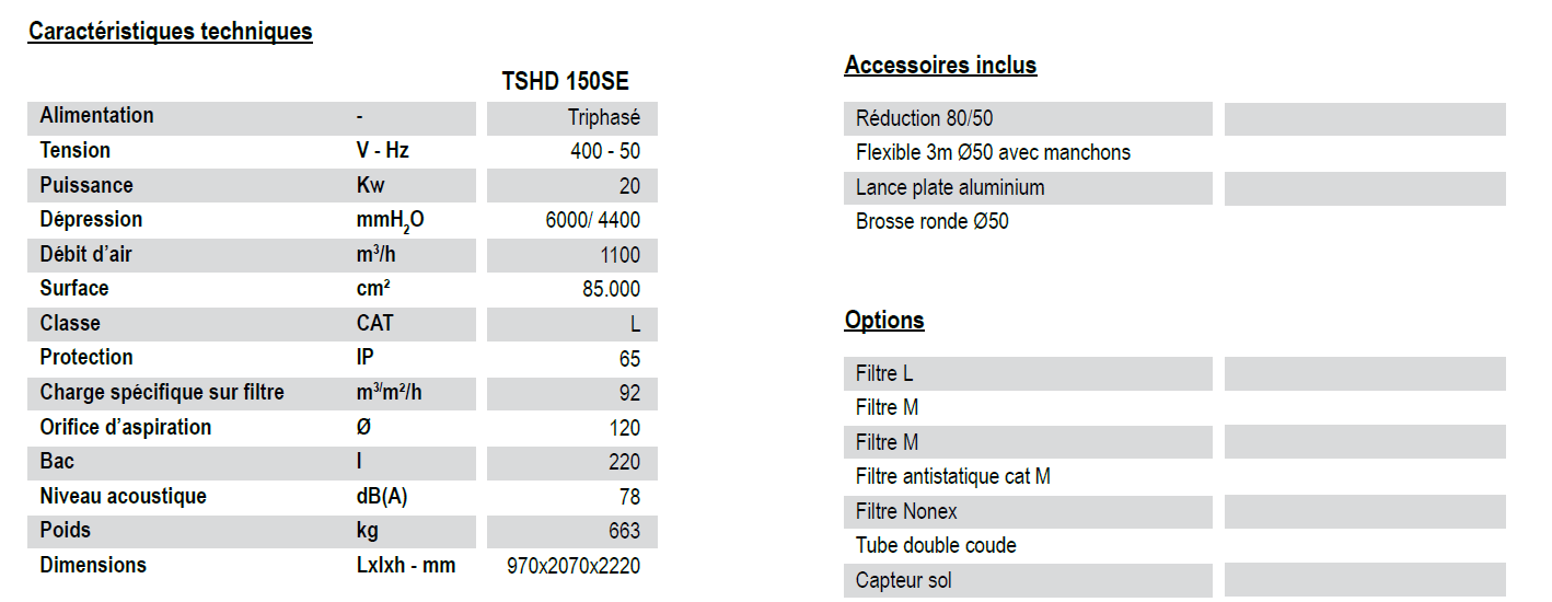 Aspirateur industriel grande puissance fixe ou mobile - TSHD 150SE MASTERVAC