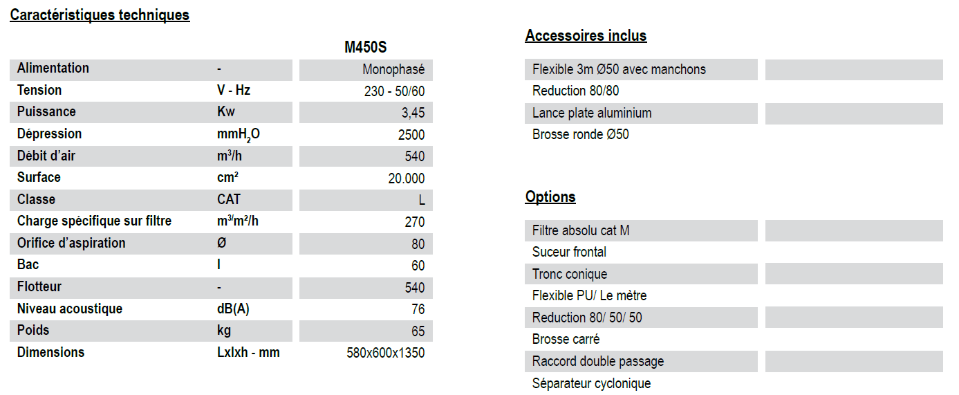 Aspirateur industriel monophasé M450S MASTERVAC